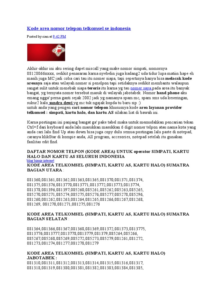 Kemarin hari teman saya sempat kena tipu dari pengirim sms penipuan yang berkedok hadiah 75juta. Seperti telah kita ketahui, saat ini di pulau kalimantan telah ada provinsi baru. Kode area hanya diperlukan jika anda menelpon antar daerah yang berbeda kode penulisan dari luar negri yaitu +62526. Masukkan nomor hp target secara lengkap. Daftar lengkap kode area (hlr) nomor telepon telkomsel di seluruh indonesia tahun 2021 maka dari itu, jika ada pertanyaan, apakah kode daerah hlr bisa digunakan untuk melacak nomor hp demikianlah informasi lengkap mengenai kode area nomor telkomsel yang berlaku di tahun 2021.